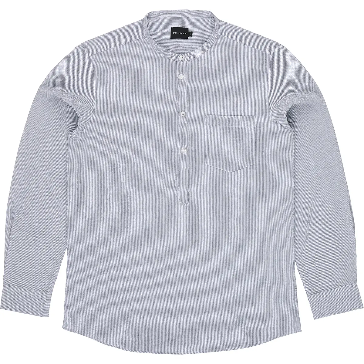 Chemise tunique avec petit col officier. Matière légère en seersucker. Coupe ample.