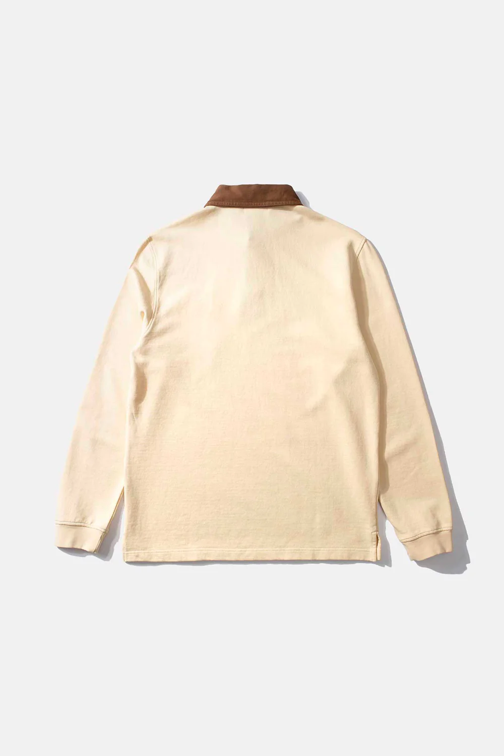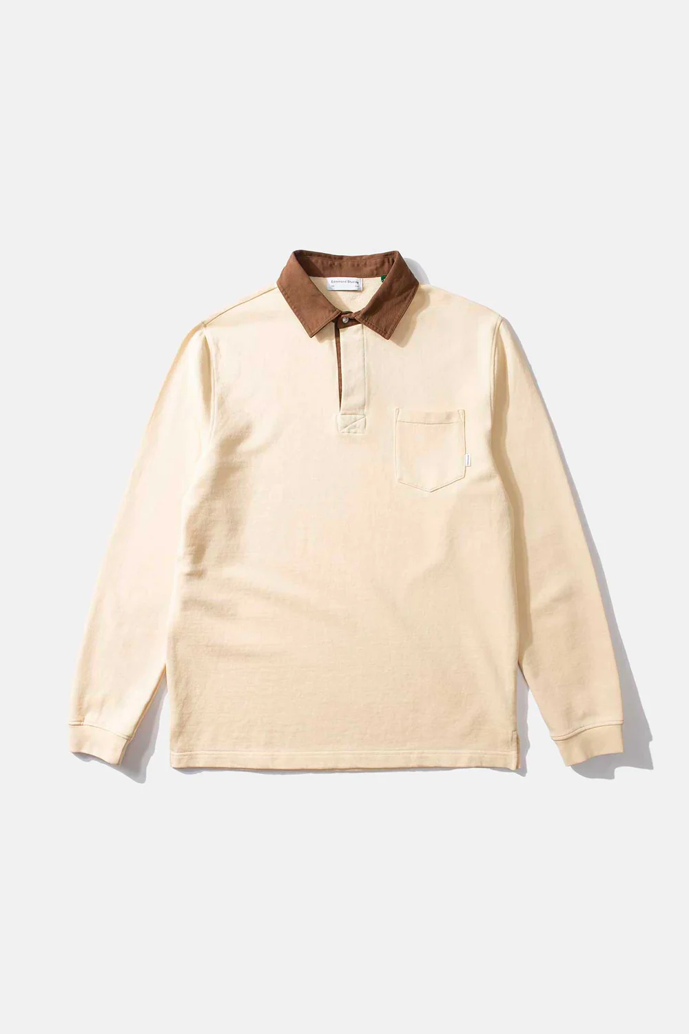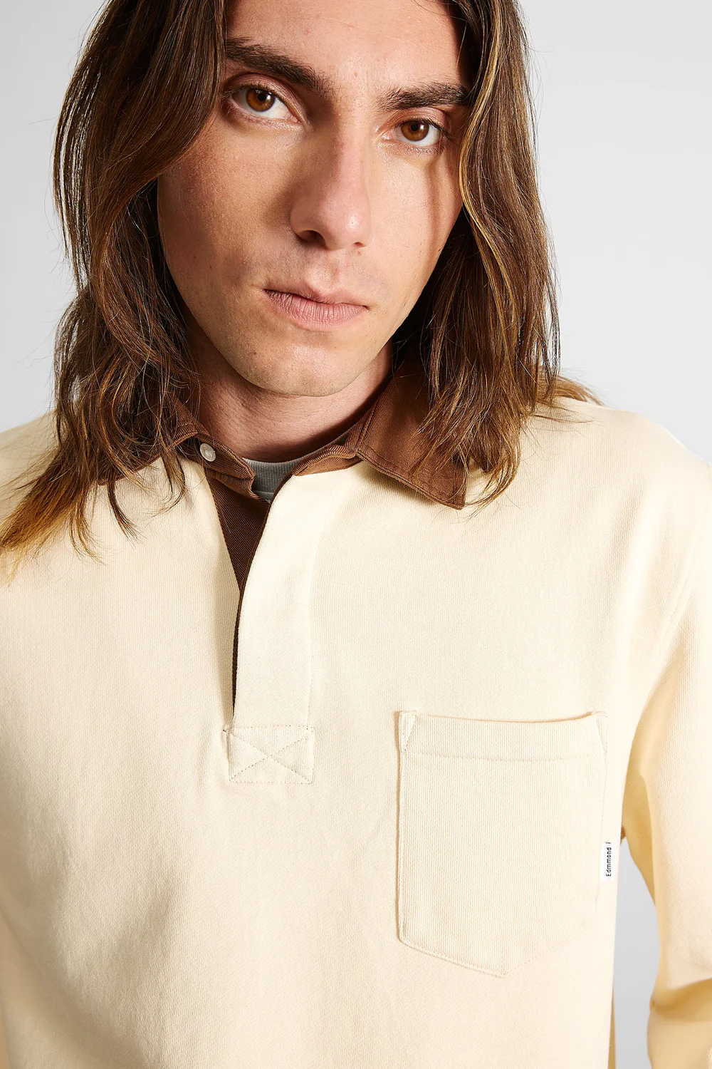 Polo à manches longues en vanille unie, avec côtes rondes et col à revers, de couleur marron.